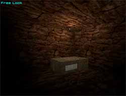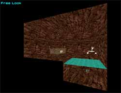 Now the square swimming hole does not look very 'natural'. Lets edit it with the Vertex editor. Go into Vertex mode (Shift + V). In the Top viewport, click and drag around the point of the square that is exposed, ie not against a wall. The vertex will change colour from light blue to red. With your grid size set to 1m press down on the M key and at the same time press the up arrow 4 times and then while holding down the M key press the right arrow 5 times. This should have changed the shape of the swimming hole. Build (Spacebar) your level.