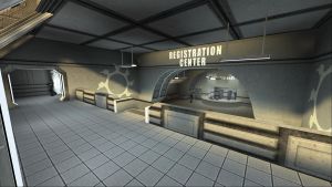 Parker enters the registration main lobby and following a brief detour to the tramway area, rides another elevator to the shuttle docking bay command center.