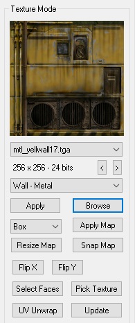 - Material: This allows you to sort the current texture directory by material type. Most directories are only one material type but some like Trim are more than one material type. See RF1 Materials for a list of available materials and their properties.