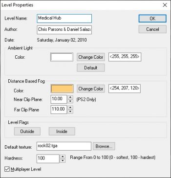 - Level Properties: This brings up the Level Properties dialog box.