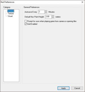 - Auto-Save: Sets the time between auto saves so your level is backed up on a regular basis. A setting of zero will disable auto saving. An Auto-Save .RFL file will have a "~" in the file name.